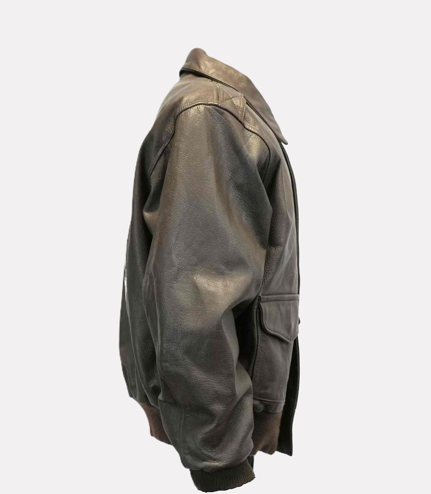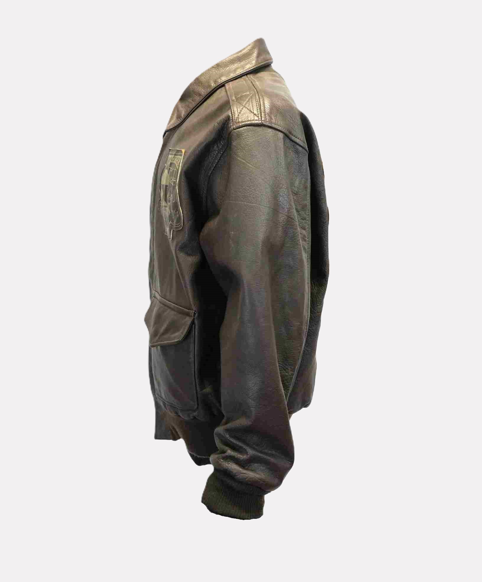 The Tuskegee Airman Cockpit USA jacket, crafted in 1987, honors the legendary African American pilots who served during World War II. This leather bomber jacket features insignias and patches reflecting the legacy of the Tuskegee Airmen. Donated by former Tuskegee airman and FAMU alumnus Major Roy Spencer.