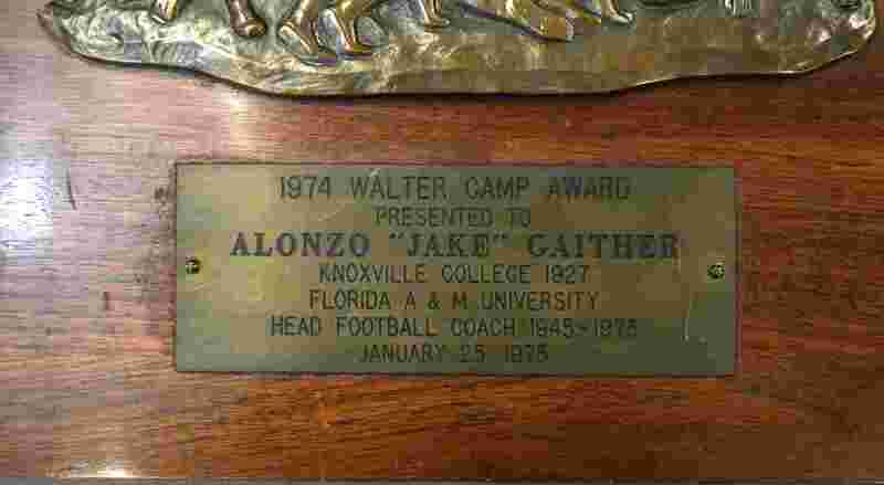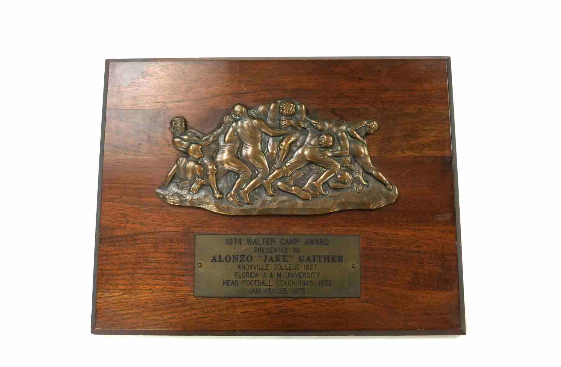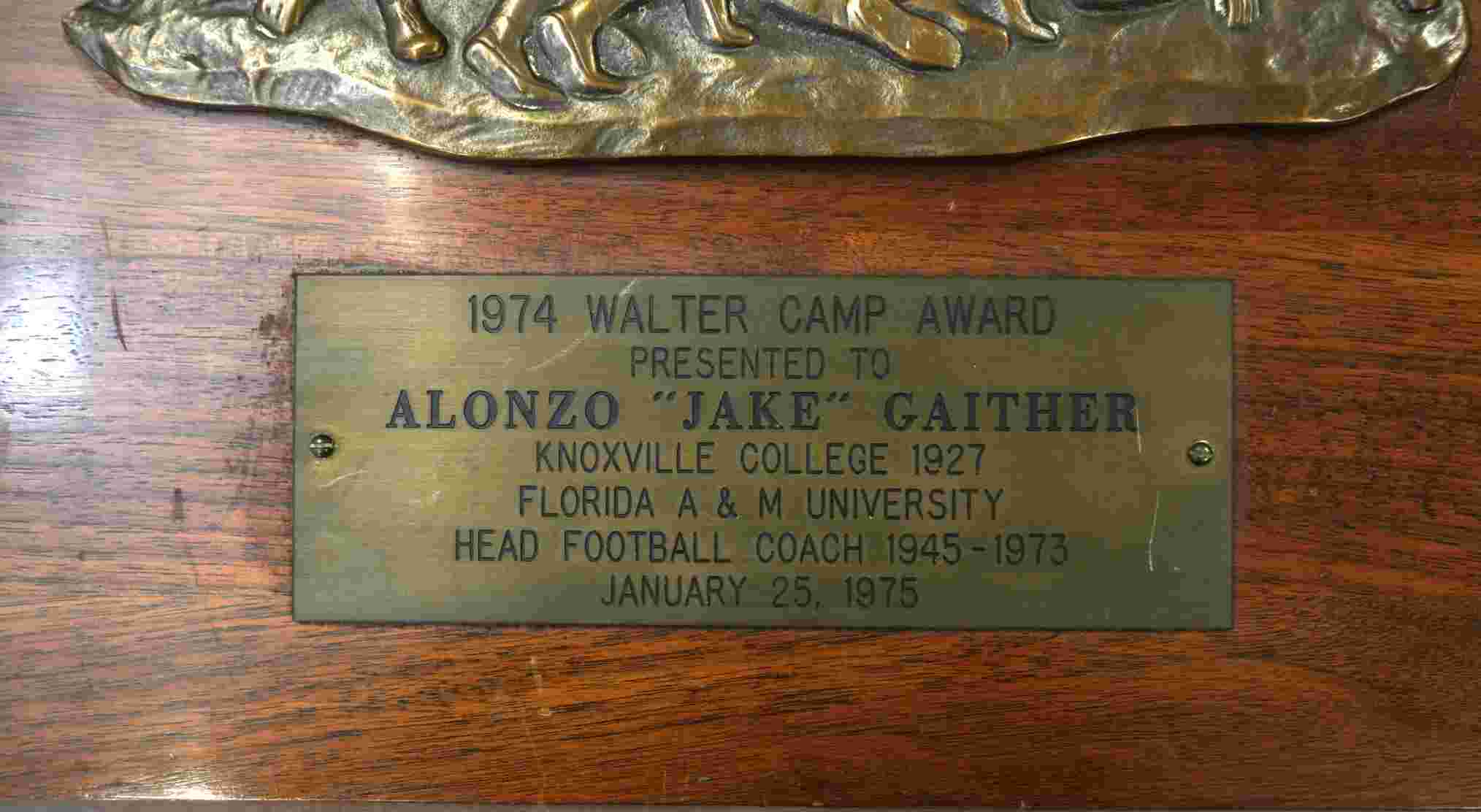 Coach Alonzo "Jake" Gaither received the Walter Camp Man of the Year award in 1974. This honor was presented by the Walter Camp Football Foundation and is bestowed annually to an individual in the college football world who exemplifies success, leadership, integrity, and a commitment to Walter Camp’s ideals—such as teamwork, public service, and American heritage